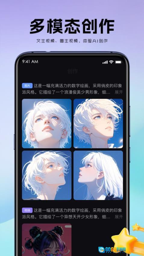 3、创意工坊:配备10+专业创作模板,只需输入简单提示词,就能生成个性化内容。支持4K视频导出,画质细腻且播放流畅。