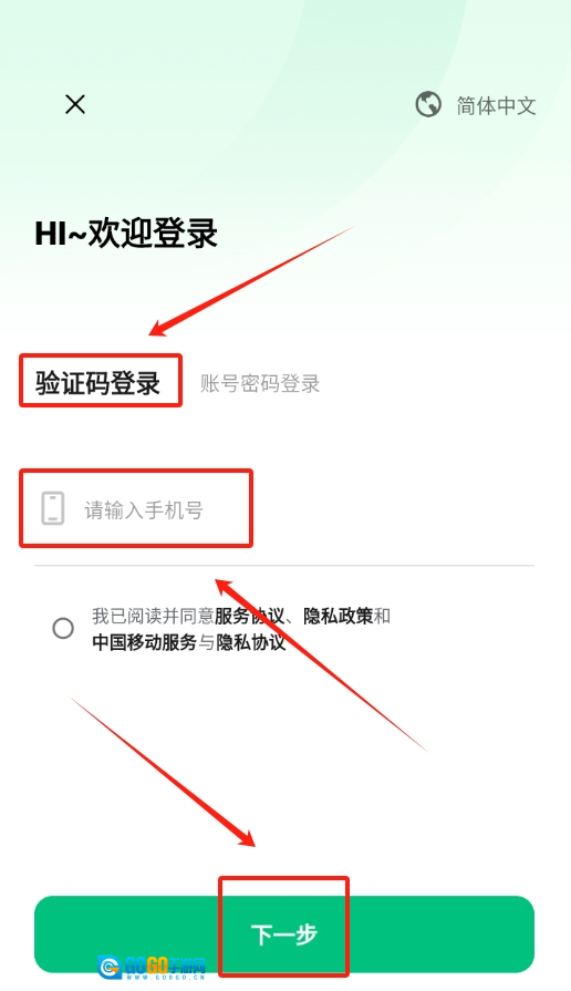 2、采用验证码登录方式,先输入手机号以获取验证码,待填写验证码后,即可登录系统并开始使用相关功能。