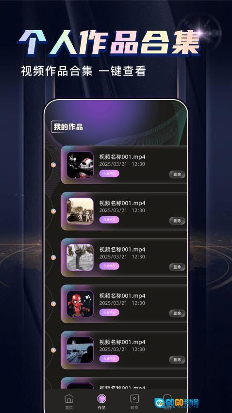 点击“我的作品”能够查看过往的编辑记录,便于随时接着处理尚未完成的视频项目。