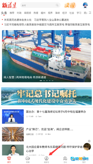 1、打开新福建应用后,在底部导航栏找到并点击“福建号”板块,该板块主要汇聚福建本地的热点新闻内容。