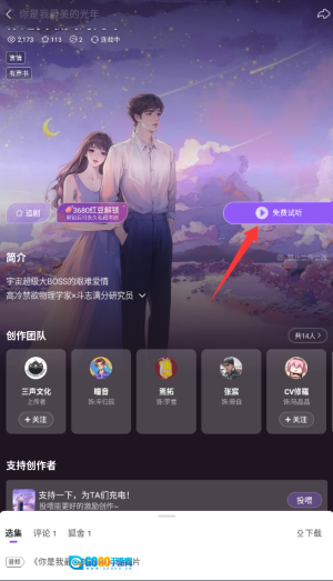 3、挑选出感兴趣的漫画后,点击“免费试听”按钮就能预览更新内容。