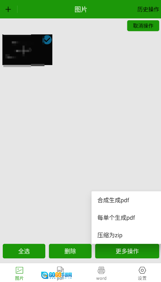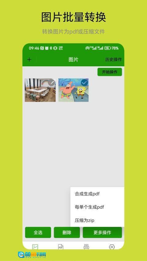 3、借助底部菜单,能够把图片批量转换成PDF文档,或者打包压缩成ZIP格式的文件。