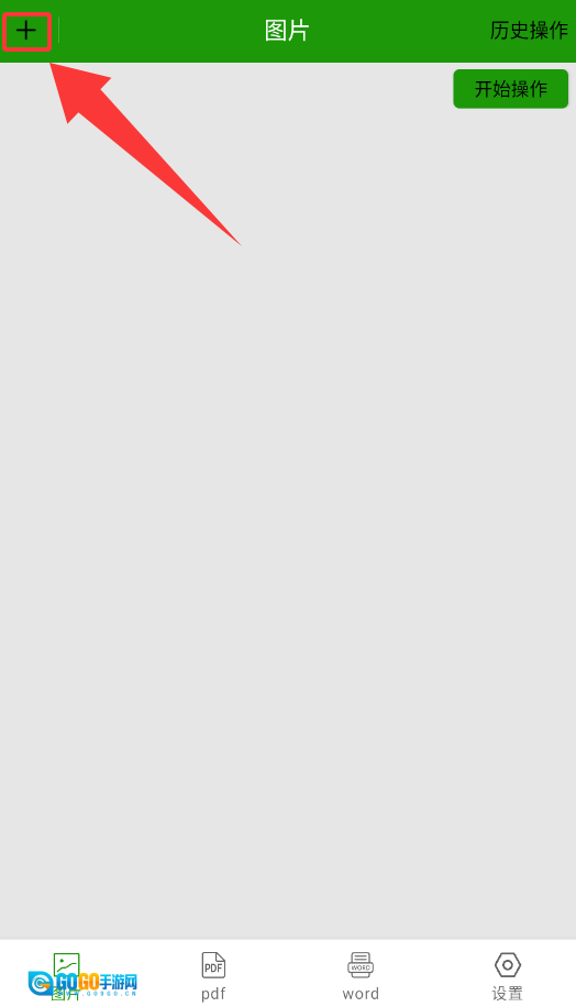 1、打开批量图片转换器,点击界面左上角的“+”图标来添加需要处理的图片文件。