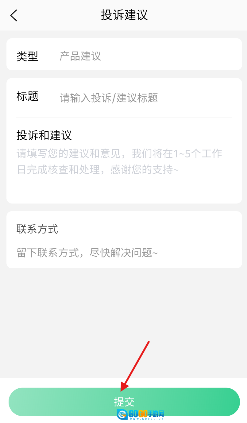4、请依次填写清晰明确的建议标题、有效的联系方式以及具体详实的反馈内容,在仔细核实确认所有信息无误后,点击提交按钮完成操作。