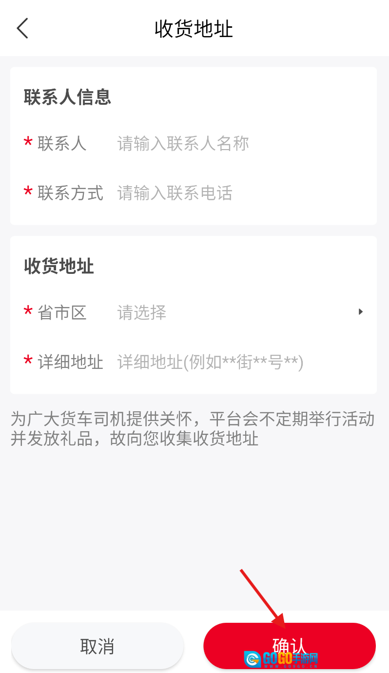 3、进入收货地址页面后,请按顺序填写联系人姓名、联系电话以及详细的收货地址等相关信息,仔细核对确认信息准确无误后,点击“确定”按钮完成保存操作。