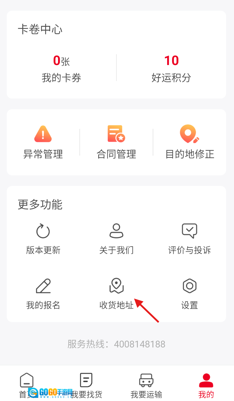 2、进入“我的”页面后,用手指向下滑动屏幕,找到“收货地址”板块并点击进入。