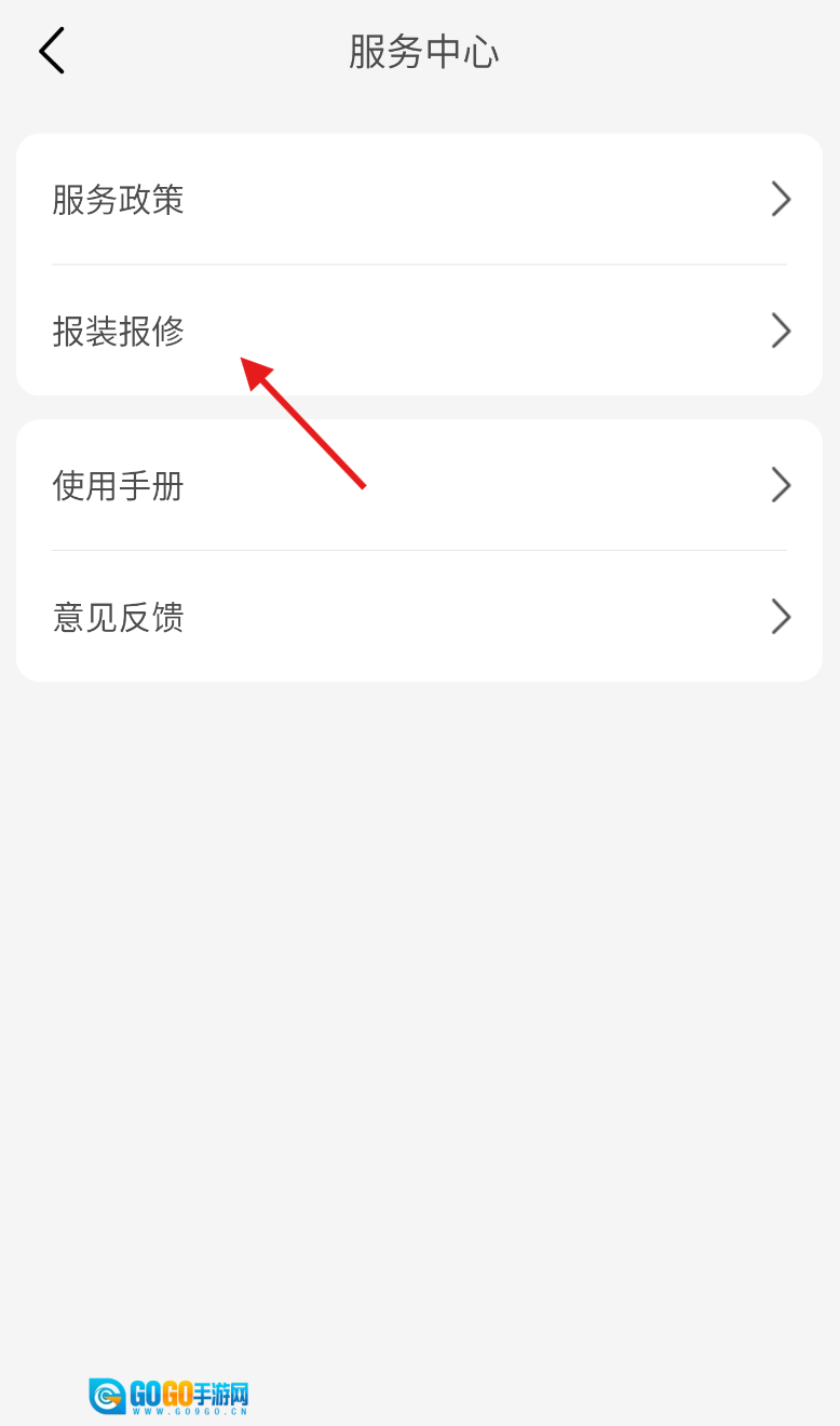 3、进入“服务中心”界面后,找到“报装报修”功能按钮,点击该按钮即可进入报修服务通道。