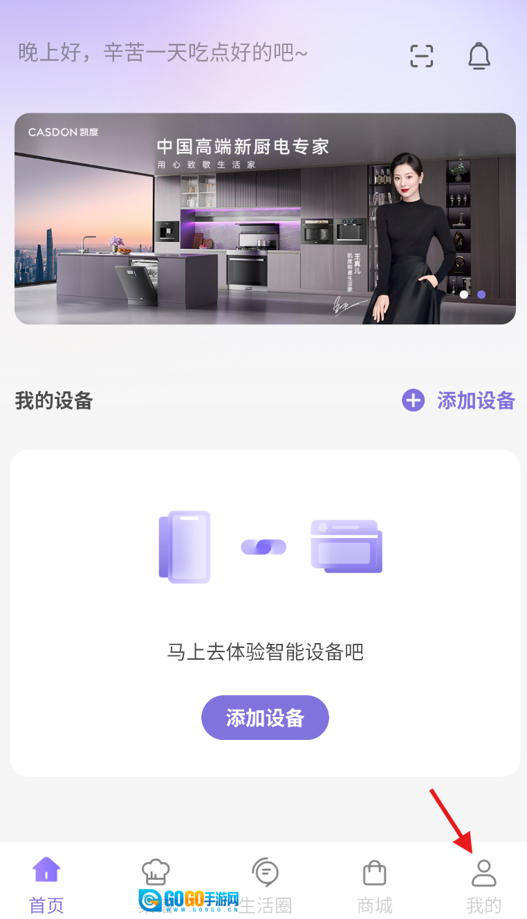 1、打开凯度生活家应用,在底部菜单栏里找到“我的”选项,点击该选项进入页面。