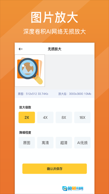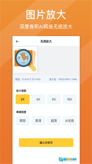 1.【图片放大】运用深度卷积AI网络技术,达成图片的无损放大效果,同时对画面中的噪点与锯齿进行智能补充优化。