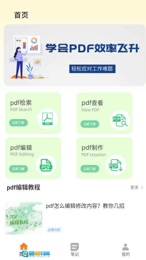 1、打开Noton笔记,在首页就能看到多种PDF处理功能选项。