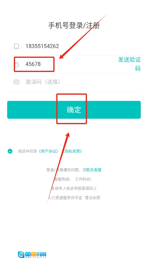 3、获取到验证码后,在指定位置填写验证码,接着点击“确定”按钮,即可完成账号注册流程。
