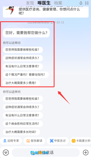 2、登录成功后,选择“远程专家”功能,在线描述症状,即可获取专业医疗建议。