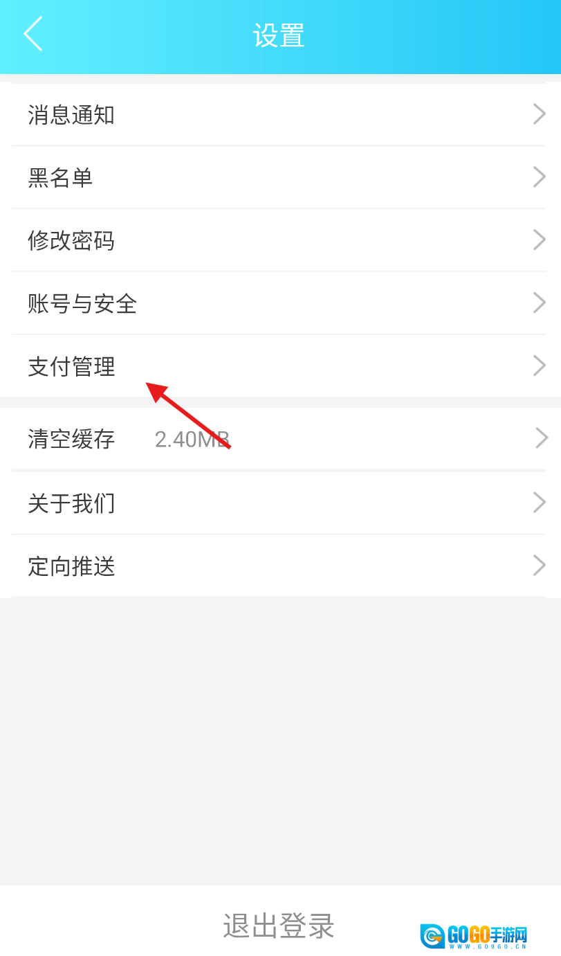 3、在设置界面的众多选项里,仔细找一找并选中“支付管理”板块,然后点击进入支付相关的设置页面。