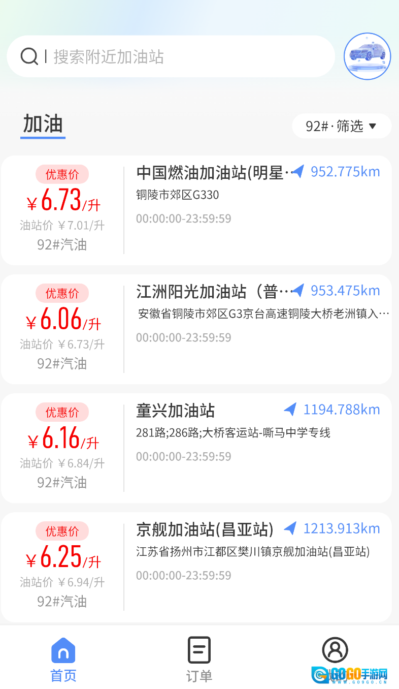 2、站点导航:汇聚海量加油站点资源,支持一键定位周边油站,为用户规划精准导航路线,助力快速到达目的地。