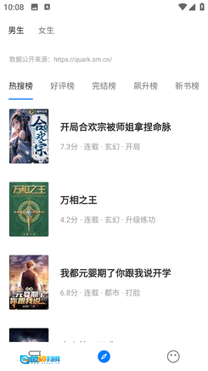 1、登录书海小说平台后,可在首页顶部的“热搜榜单”板块查看当下的热门小说推荐清单。
