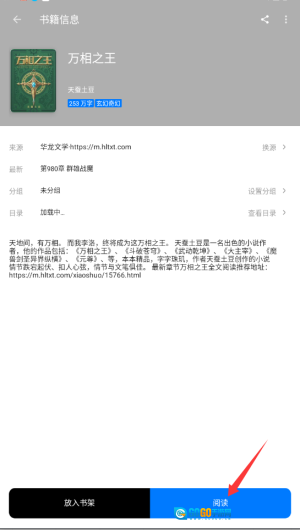 在挑选出感兴趣的作品后,系统将自动跳转至小说详情页,并呈现出章节相关信息。
