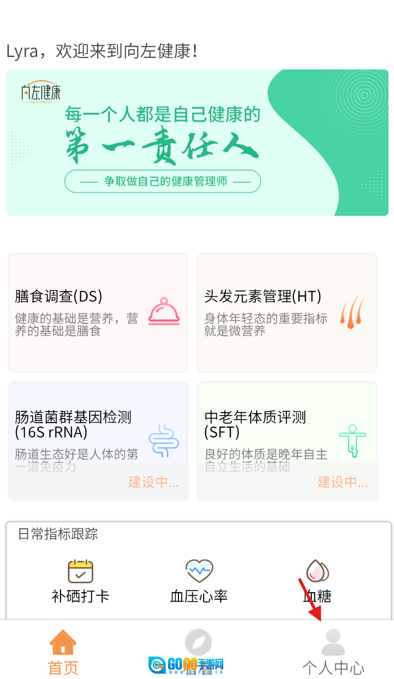 1、打开向左健康应用,在界面底部找到“个人中心”图标,点击进入个人专属页面。