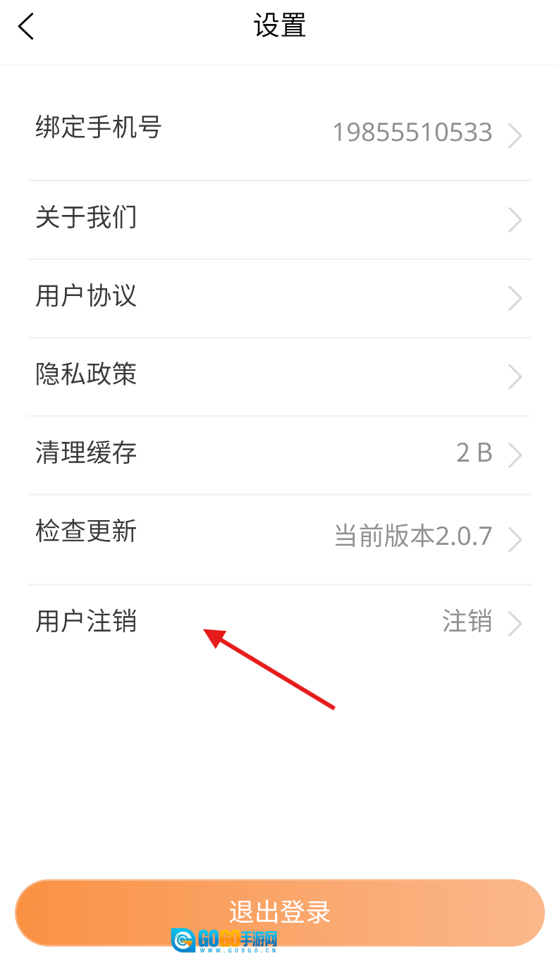3、进入设置界面后向下滑动浏览,找到“用户注销”的功能入口,点击该入口进入注销操作页面。
