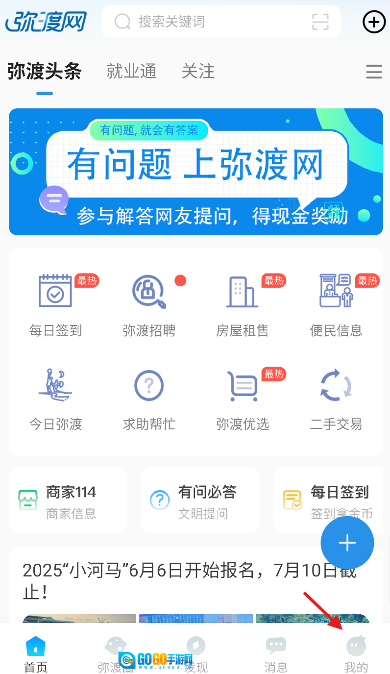 1、打开弥渡网,在底部菜单栏找到 “我的” 选项,轻点进入个人专属页面。