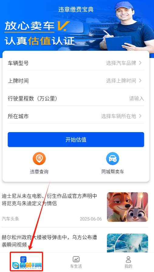 1、从应用商店下载安装二手车违章查询华为版,启动软件后完成账号注册与登录操作。