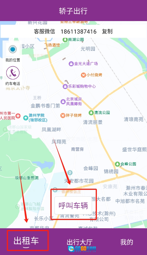 2、启动软件进入主页面后,找到“呼叫车辆”按钮并点击,即可完成叫车以出行。