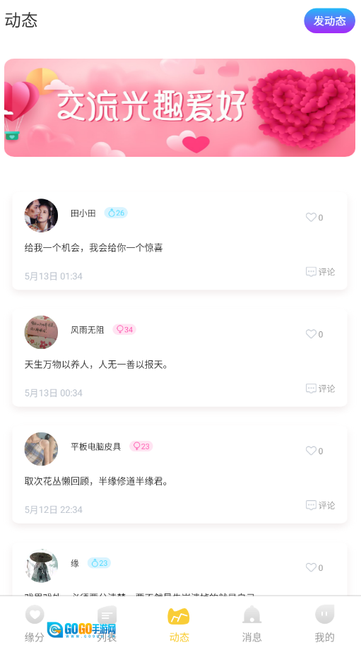 3、动态分享生活点滴:进入“动态”板块,你能够交流兴趣爱好,分享日常生活里的精彩瞬间。