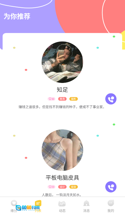 1、首页探索推荐用户:打开双悦,首页会智能为你推荐用户,点击就能开启聊天之旅。