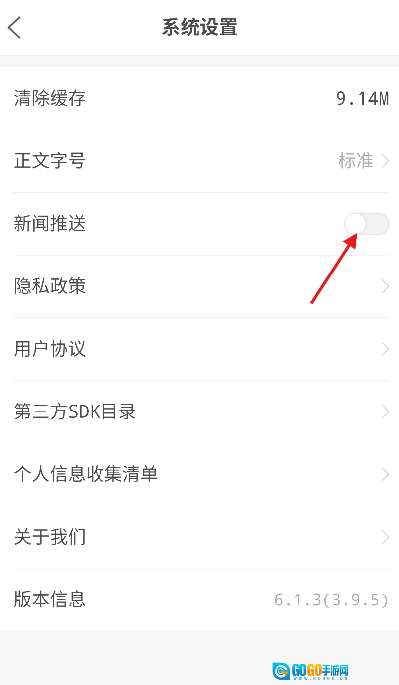 3、进入系统设置界面后,找到“新闻推送”的功能标识,点击它右侧的开关按钮,就能将该功能开启了。