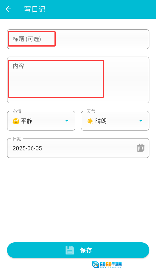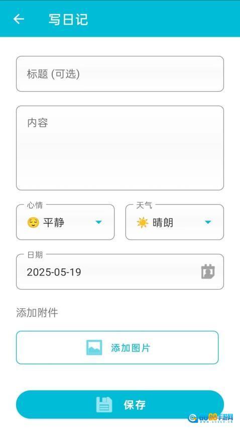 2、在编辑界面中,用户能够填写日记标题,记录当天的心情以及天气情况,同时可以自由地撰写正文内容。