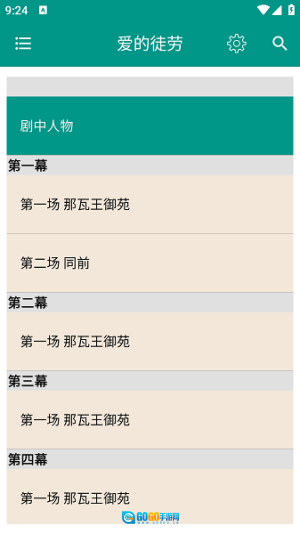 1、作品查阅指引:可按体裁分类浏览作品目录,也能通过搜索框直接输入剧目名称,从而快速进入阅读界面。