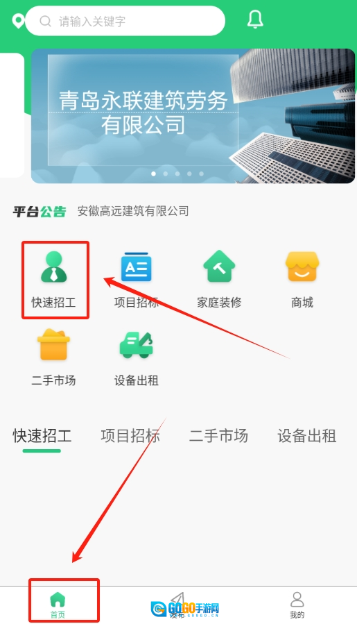 3、成功登录后系统会自动跳转回主页面,此时点击“快速招工”按钮即可进行招工操作。