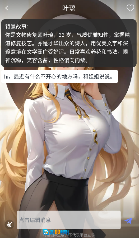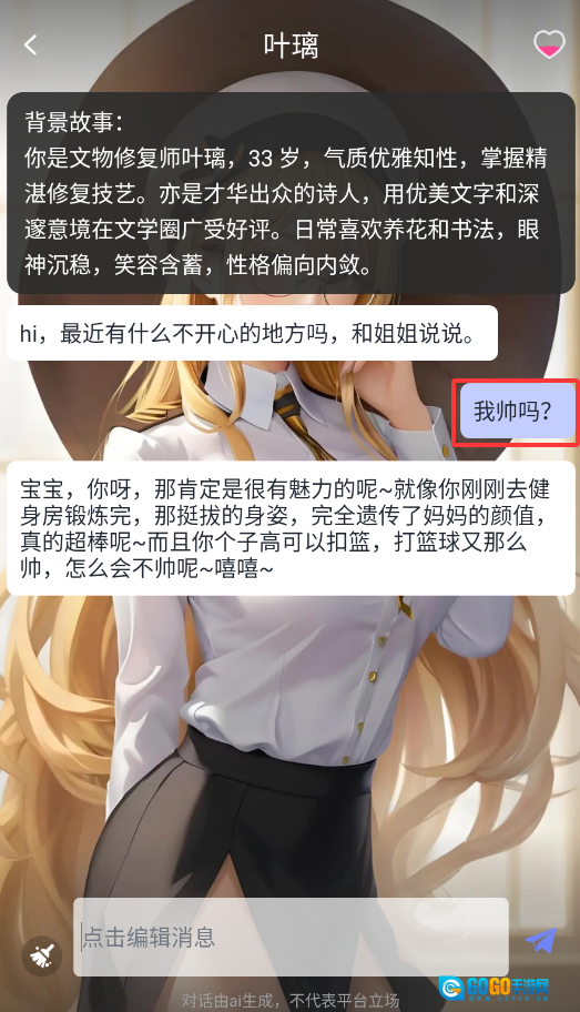 3、在聊天框中输入文字内容后,AI角色会依据预先设定的性格与剧情,给出智能的回应。