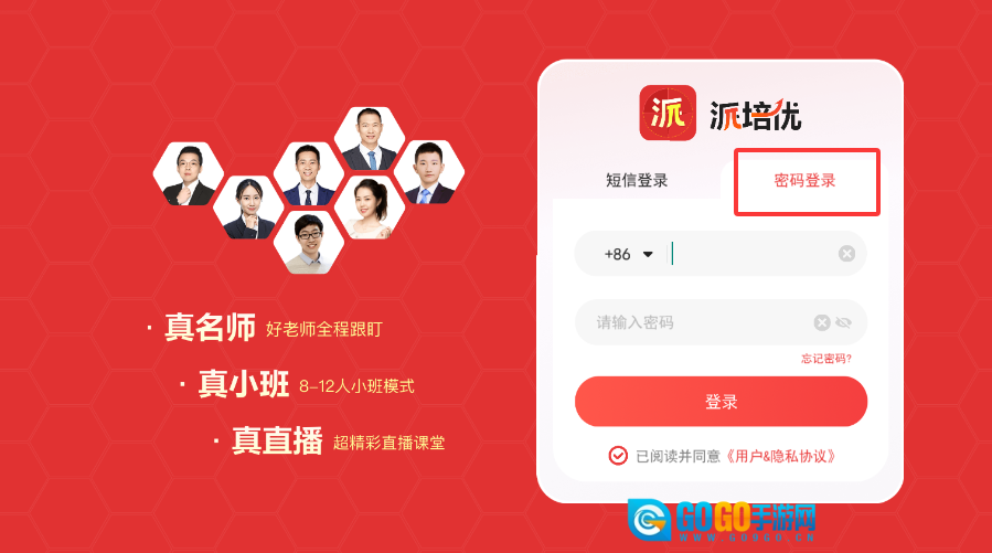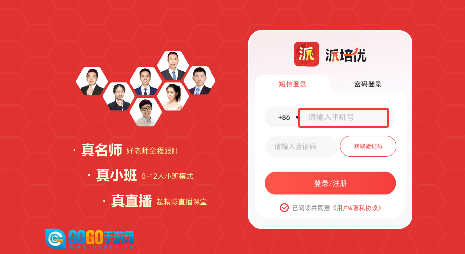 1、打开派培优应用后,在登录界面输入自己常用的手机号码来完成身份验证。