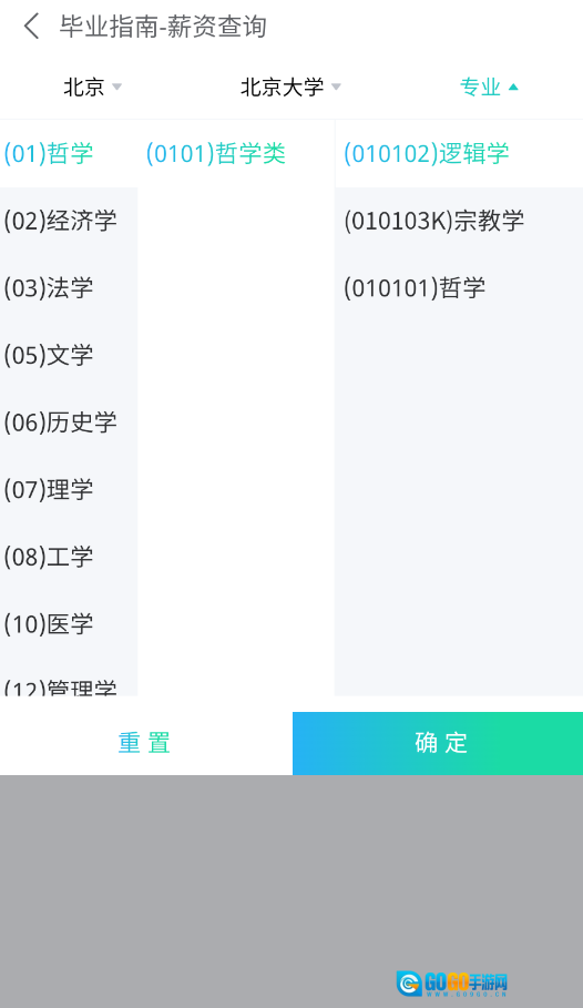 3、按照提示依次选定毕业院校与所学专业,系统会自动生成相应的薪资水平报告。