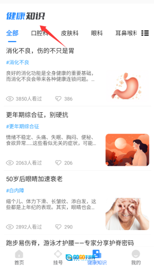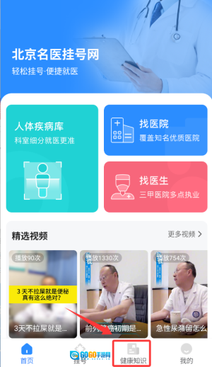 1、进入北京名医挂号网登录后,在首页导航栏找到并点击“健康知识”板块,即可浏览各类专业医疗知识内容。