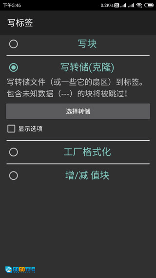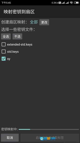 3、选用新建的密钥文件对卡执行读写操作,读取出来的卡内数据能够存储到手机里。
