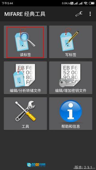 1、先开启手机的NFC功能,接着打开MIFARE经典工具,把卡片贴到手机的NFC识别区域,此时会显示“发现新标签”的提示,之后点击“读标签”按钮即可。