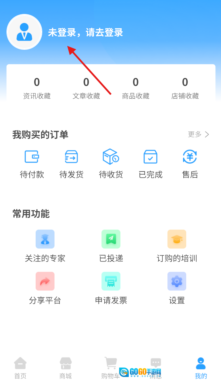 2、进入个人页面后,若看到“未登录请去登录”的提示文字,点击该区域即可跳转至登录界面。