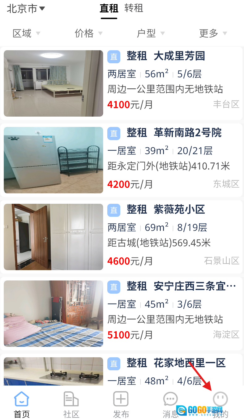1、开启房东直租功能,在主界面底部找到并点击“我的”选项,进入个人中心页面。