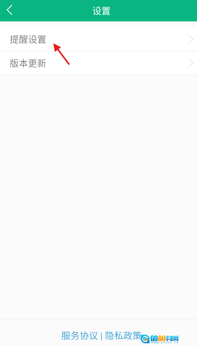3、进入设置界面后,排在最前面的选项就是“提醒设置”,点击它就能进入提醒功能的设定页面。
