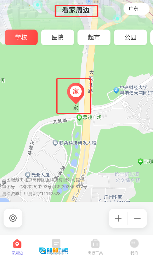 3、地图加载完成后,能够自由查看周边商场、医疗机构、教育场所等详细的实景信息。