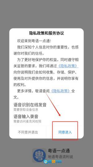1、轻点同意按钮,即可顺畅进入应用界面,开启您的语言学习之旅。