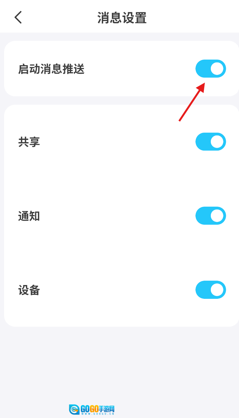 4、进入设置页面后,找到“启动消息推送”这一功能选项,点击它右侧的开关按钮,当开关显示为关闭状态时,就完成操作了。