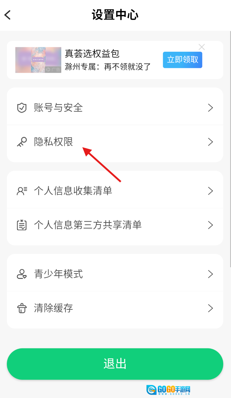3、进入设置界面后,向下滑动页面找到“隐私权限”选项,点击该选项即可进入隐私相关的设置页面。