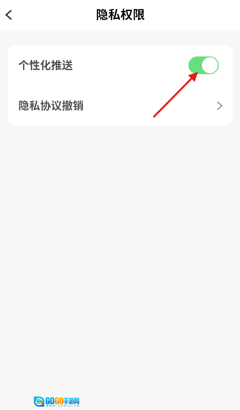 4、进入隐私权限页面后,找到“个性化推荐”这一功能选项,点击它旁边的开关按钮,就能完成关闭设置了。