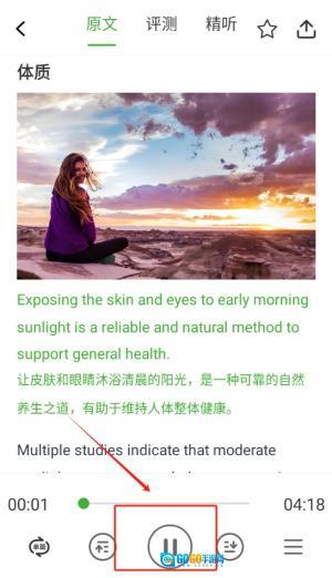 3、点击播放按钮,聆听所选文章,感受高品质的听觉享受,同时提升自身的语言能力。