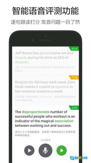3、精细化的语音评测功能,应用配备智能化跟读模块,既能实时给出评分,又能定位发音偏差之处,助力用户精准修正发音问题,有效提升发音的准确度。
