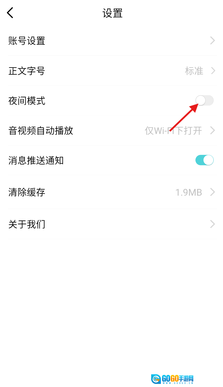 3、在设置界面中,仔细查找 “夜间模式” 选项,点击开启即可切换至舒适的夜间浏览状态。