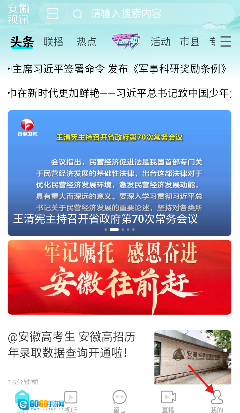 1、打开安徽视讯,于首页下方找到 “我的” 选项并点击进入个人界面。