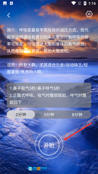 3、选择练习时长后,点击【开始】按钮。